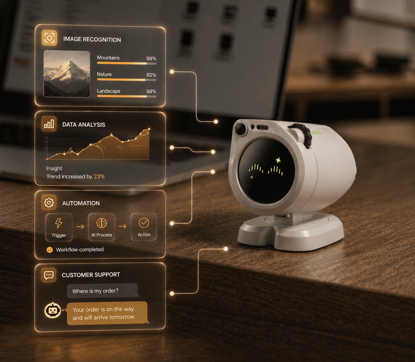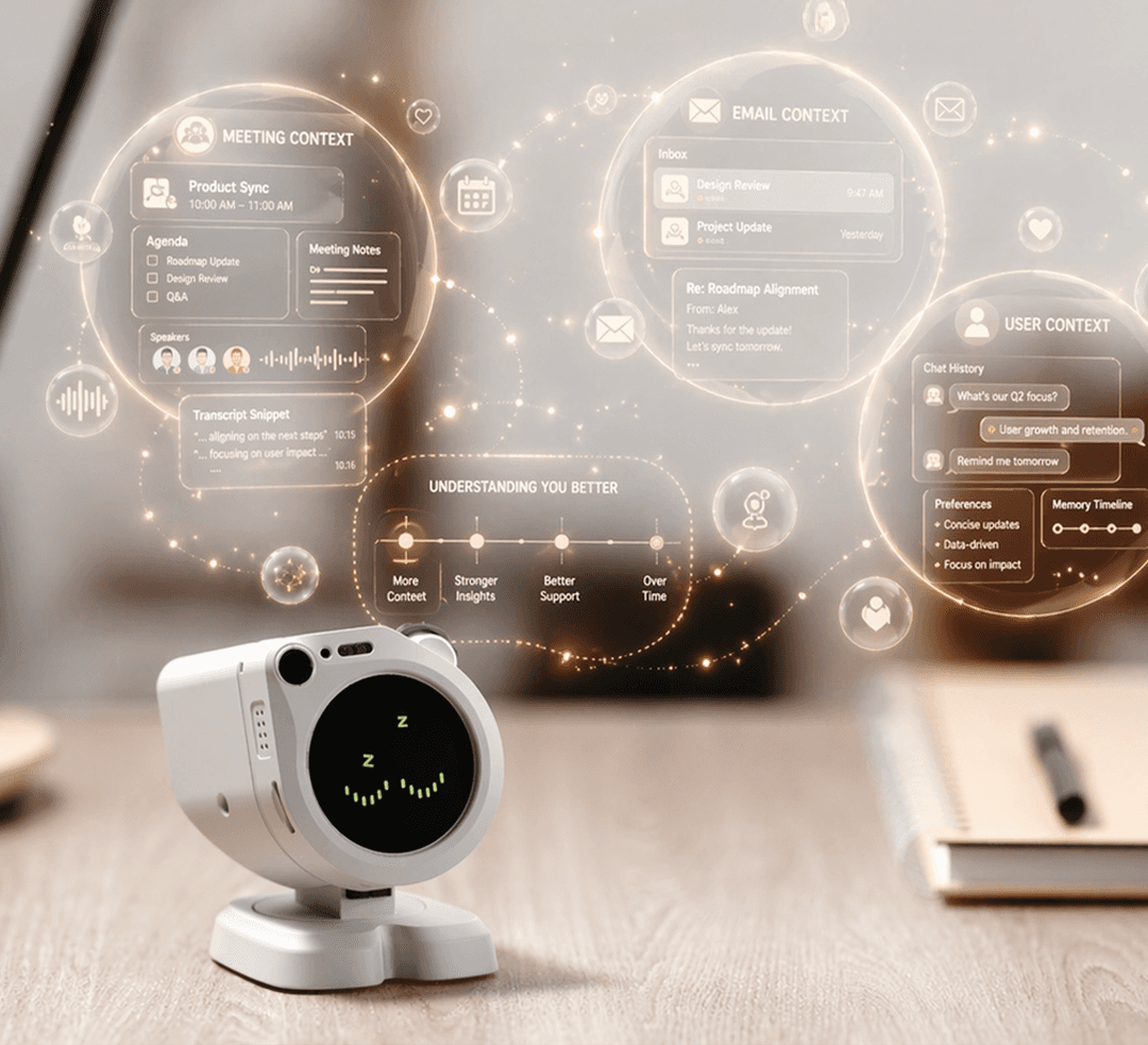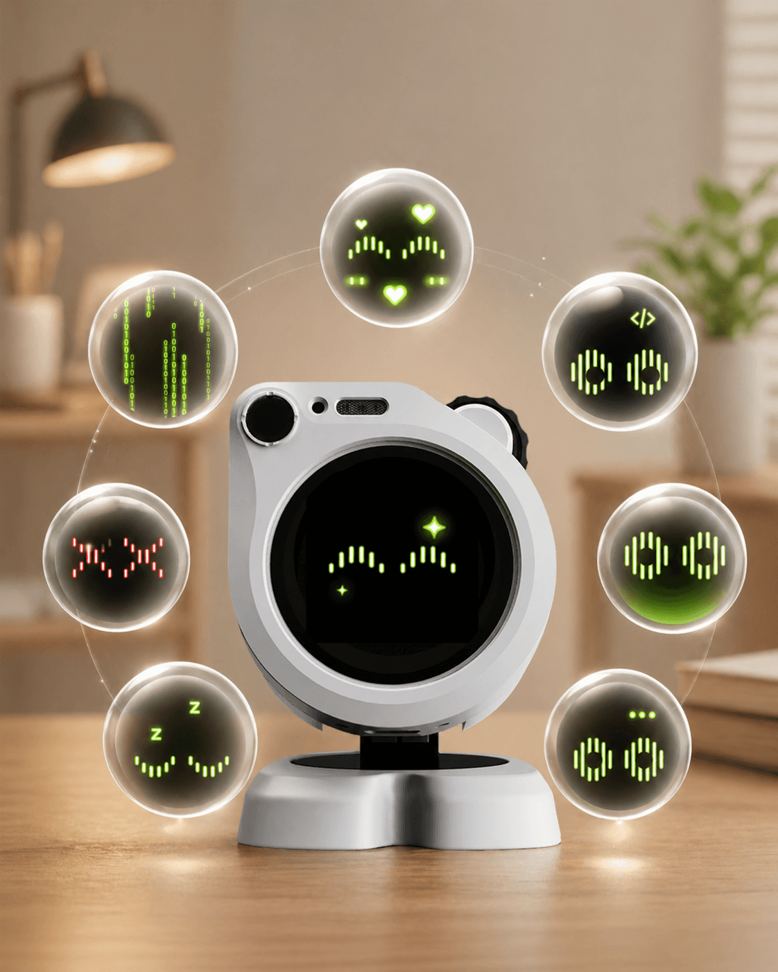 A desk robot that executes your digital tasks automatically.