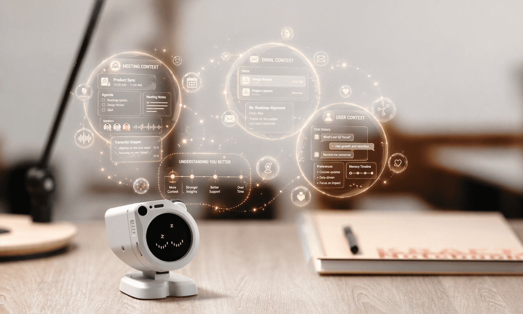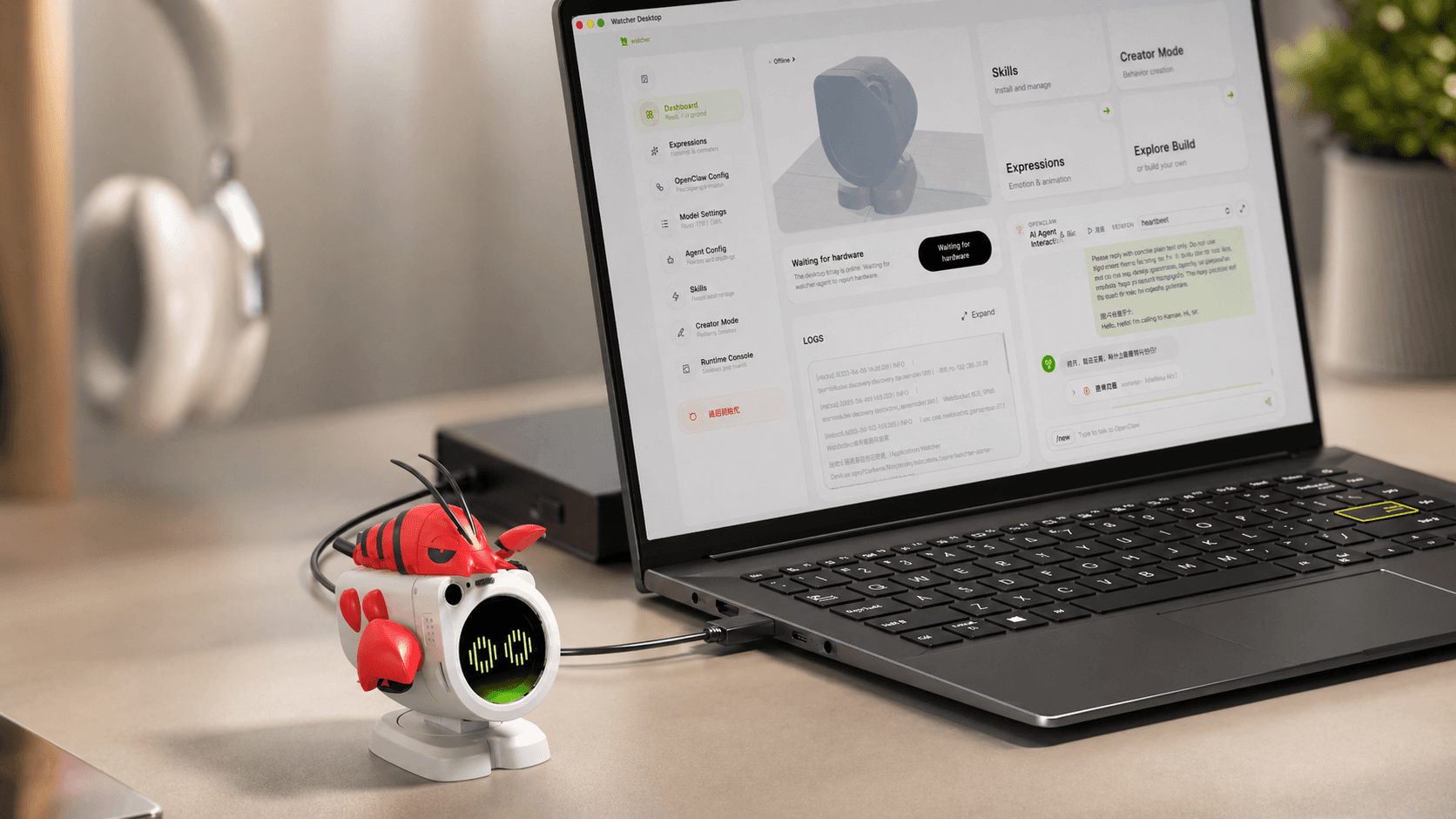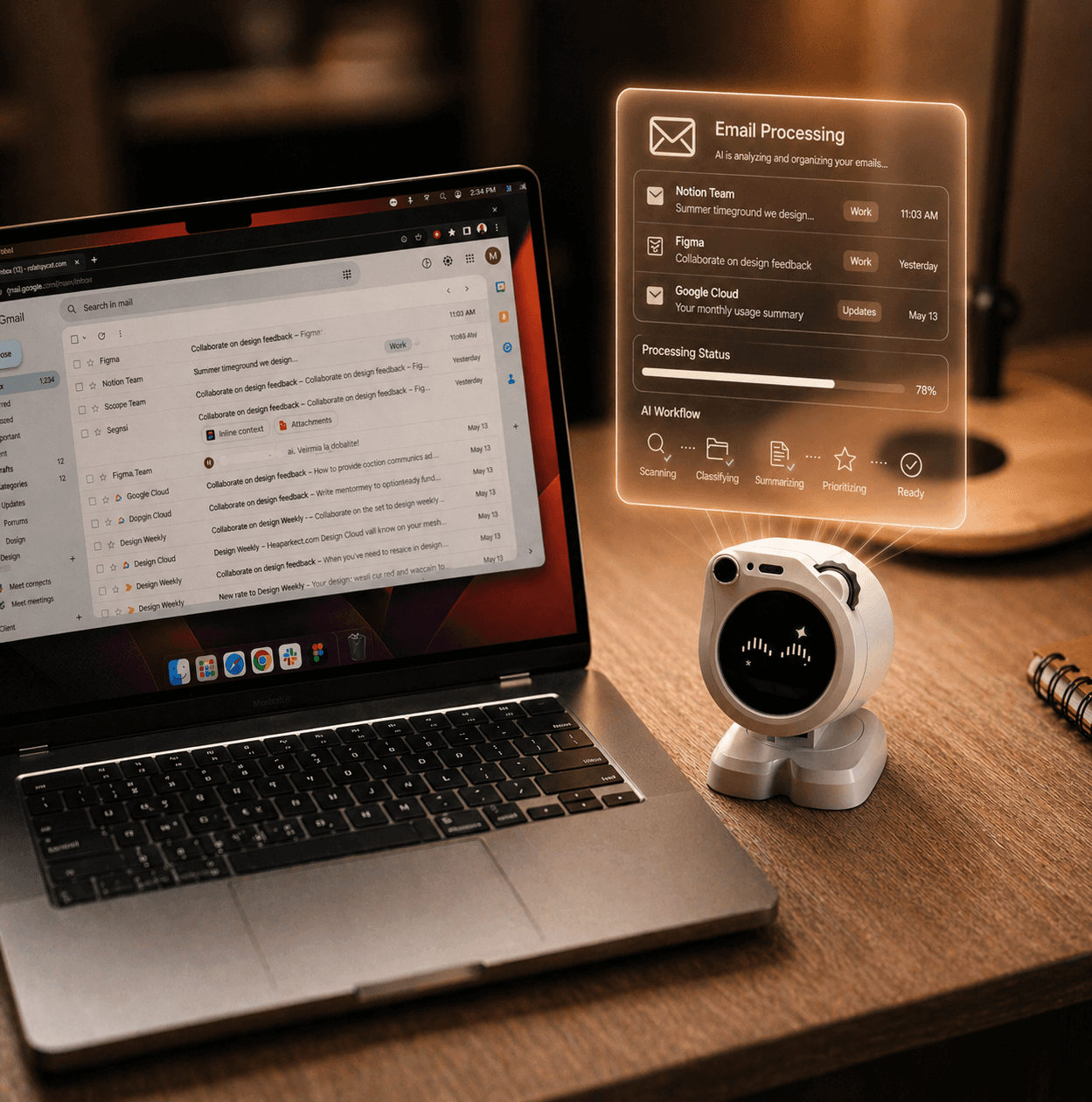 A desk robot that executes your digital tasks automatically.